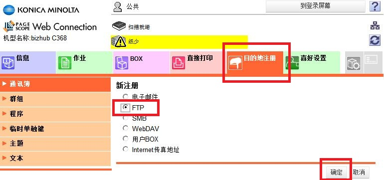 1)在IE地址欄中輸入機器的IP地址進入Web Connection