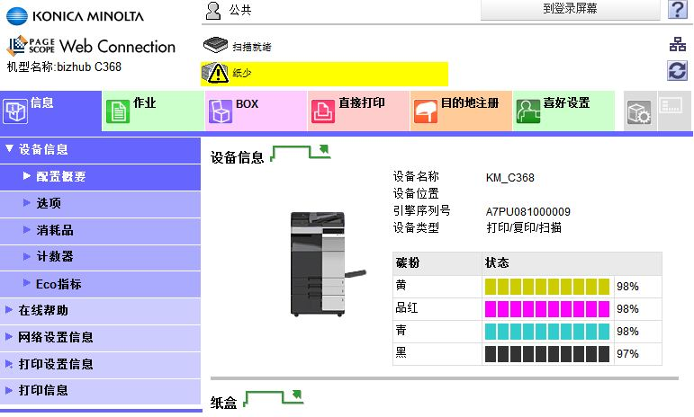 1)打開IE,在地址欄中輸入機器的IP地址進入Web Connection
