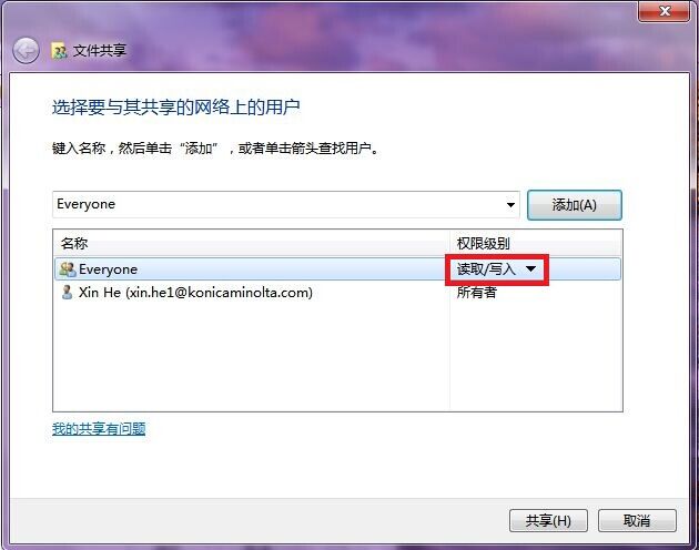 1)PC端設置共享文件夾,共享設置everyone的讀取和寫入權