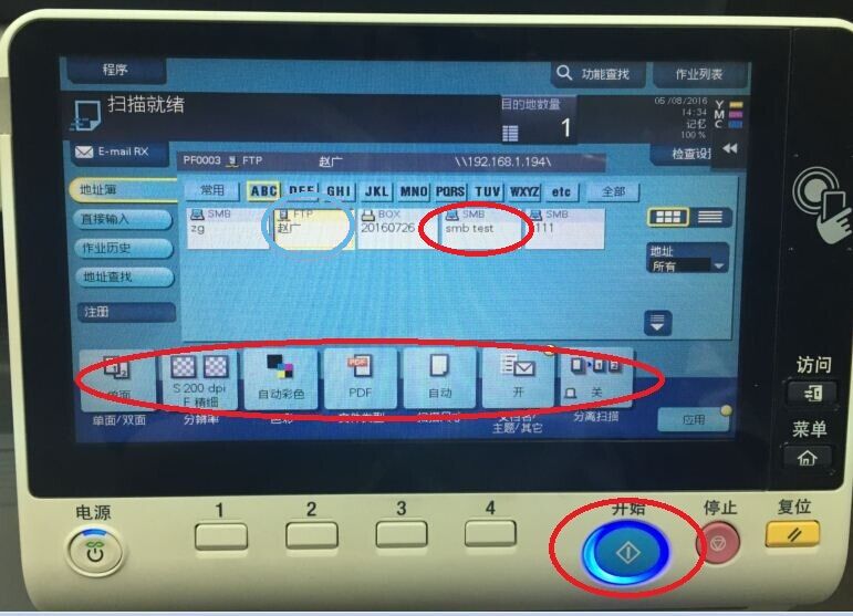 5)選中之前所創建的FTP項,設置好掃描需求后點擊右下方發光的藍色開始鍵,回到電腦設置的文件夾中查找對于圖像即可