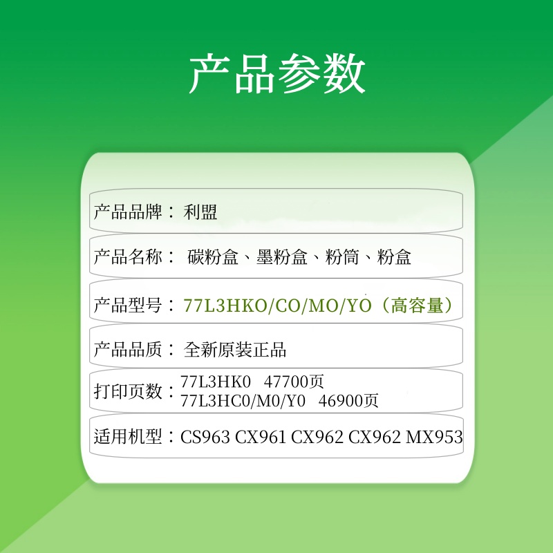 利盟碳粉77L3|利盟CS963原裝碳粉|利盟CX961碳粉